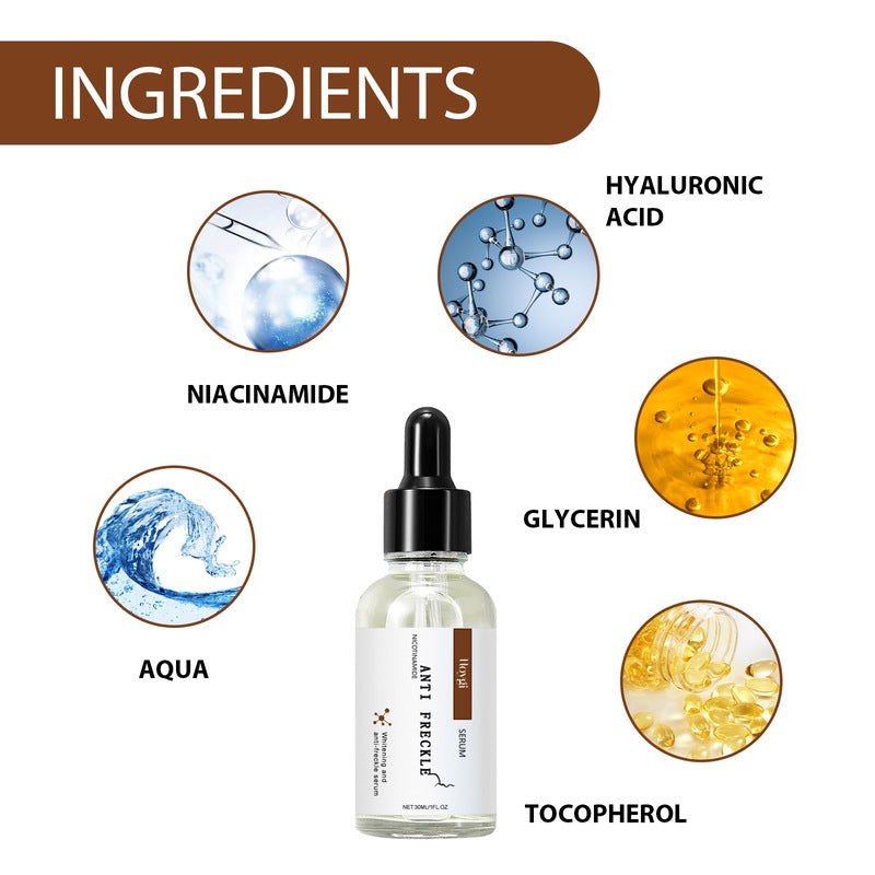 The serum contains active ingredients like Vitamin C, niacinamide, and licorice extract that help lighten pigmentation, reduce melanin production, and promote an even skin tone.